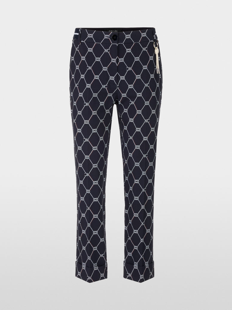 The Mc - Faracci Cropped Leg Chinos model features a feminine fit and a tapered, cropped leg. The waistband is attached and features stretch panels on the sides. The stretchy cotton/viscose blend provides a great fit and comfort. Trendy details include the stitched crease and cuff. Trendy and office-appropriate, Shortened leg.