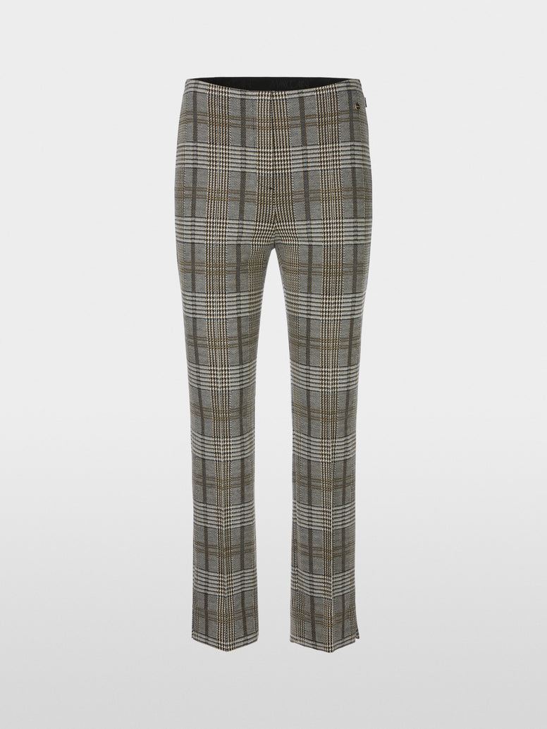 The  Loren Trousers model model is a pair of ankle-length pull-on trousers with a feminine fit. An internal elastic waistband and pocketless design give them a harmonious silhouette. The leg is straight from the knee down and defined by a pressed pleat and hem slit.