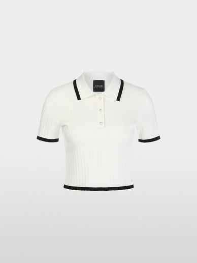 This slim-fitting model with its cropped style is a trendy update to polo shirts. It also impresses with its cool viscose knit with contrasting stripes, earning it the "Rethink Together" sustainability label. The model is "Knitted in Germany": The yarns are knitted on state-of-the-art knitting machines and the fabrics are finished in Germany. The individual pieces, such as the sleeves, front, etc., are sewn together in European partner factories.