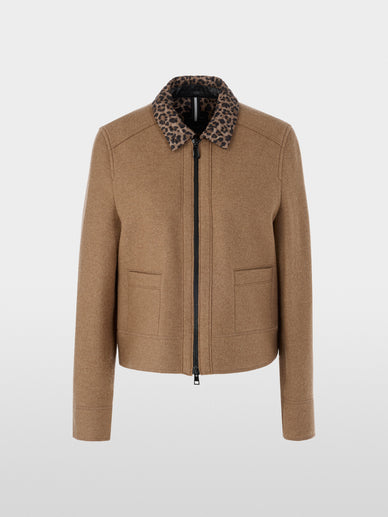 Monarch Arcane Jacket is a High-quality jacket made of 100% pure new wool – knitted in Germany. It features a two-way zipper and a stitched side pocket. The padded collar with leopard print adds a stylish accent. A sewn-in elastic band at the back subtly shapes the silhouette. Warm, comfortable, and fashionable all at once. The jacket is knitted and finished in Germany. The individual pieces are further processed in European partner factories.