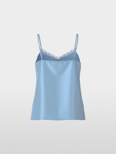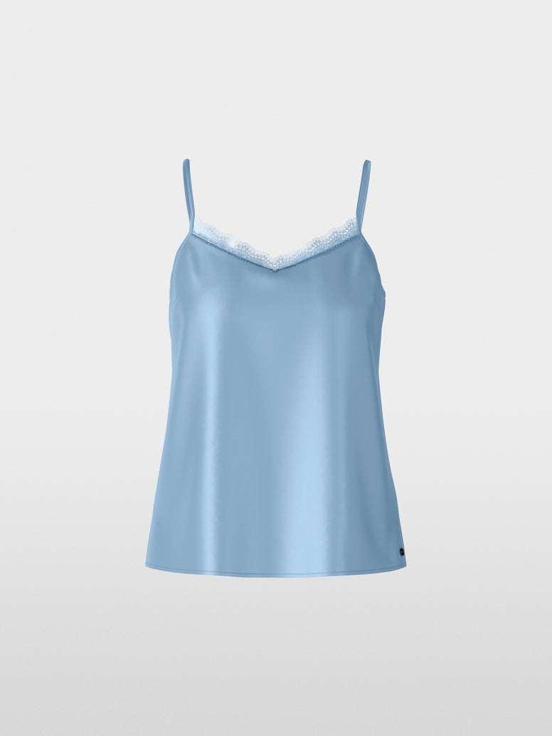 With its exquisite silk, this delicate top flatters the skin. The eye-catching lace insert at the V-neck is a real eye-catcher. Delicate, individually adjustable straps complement the feminine style. The top features bust darts and a slight A-line silhouette.