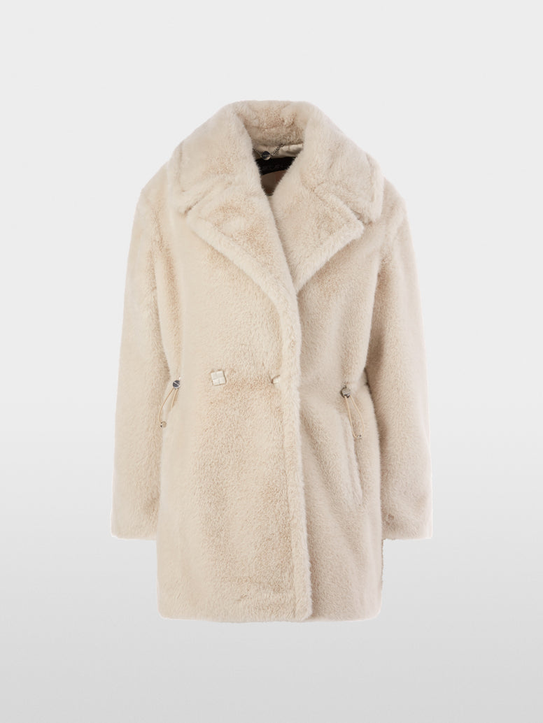 Cool style statement: Outdoor jacket in trendy fun fur. The jacket features a casual, wide fit, a wide lapel, and a double-breasted button closure. The waist can be adjusted with an internal drawstring. Barely visible in the fur: the vertical welt pockets. The jacket is lined.