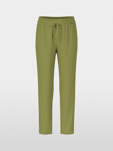 The Verine model is a pull-on pair of trousers with a relaxed fit. The silhouette is soft and flowing. Characteristic details include a jogging waistband and a tapered, slightly cropped leg. The fabric is made from a viscose/linen blend and feels pleasantly cool against the skin. A trendy, comfortable piece for working from home and vacation.