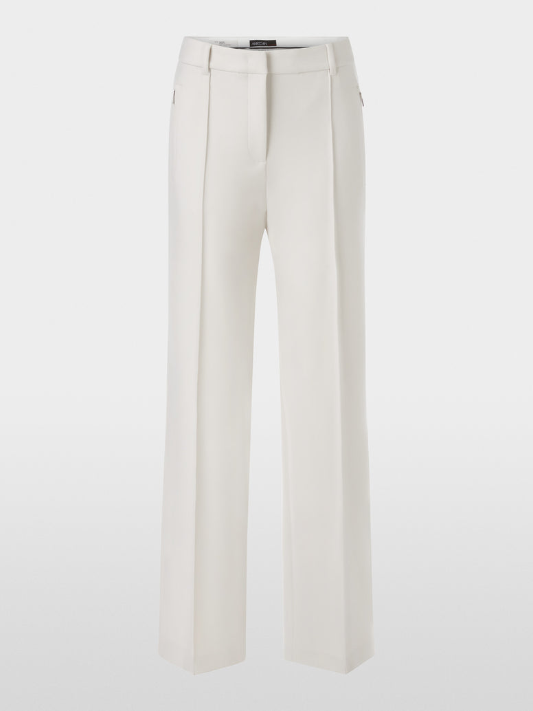 The WEIDA model is made from a fifties-inspired fabric with a subtle texture. The silhouette is softly flowing. The puddle pants style features a high waist, wide legs, and extra-long length. Finishing details include a topstitched pleat and zip-front seam pockets. The model closes with a zip and hook. Trendy and office-appropriate.
